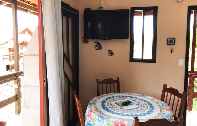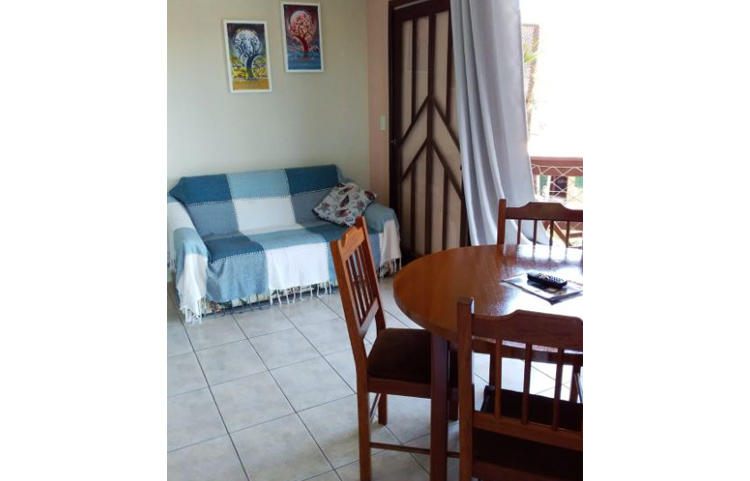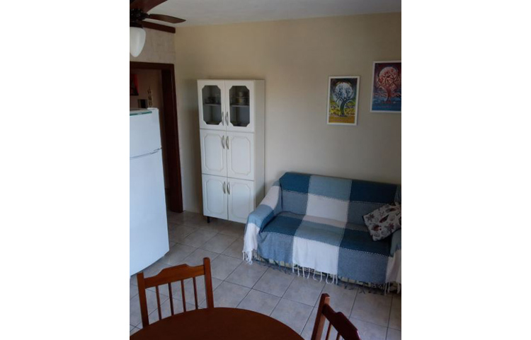 Sala com sofá cama para 2 pessoas, ventilador de teto, TV c/ antena parabólica (alcance 35 canais)